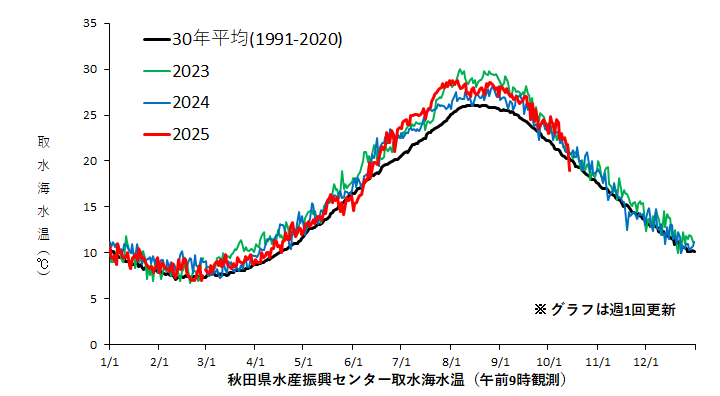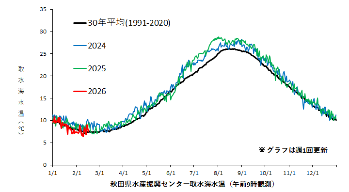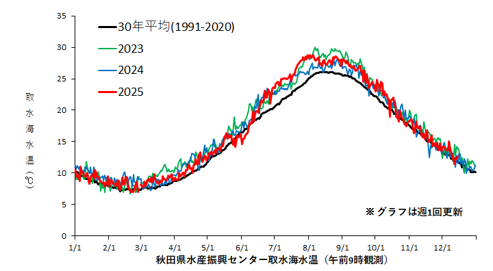 水温のグラフの更新は、月曜日または火曜日に行います。