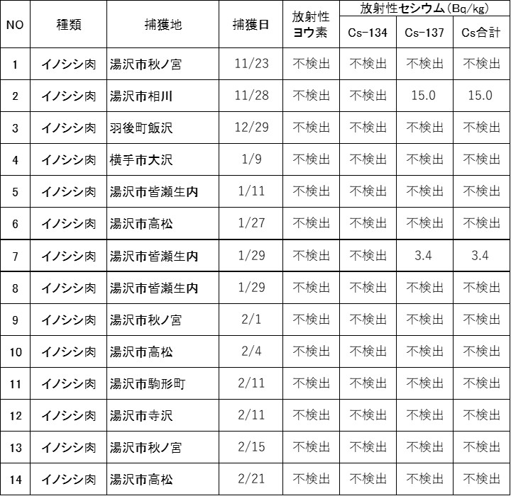 野生鳥獣肉の放射性物質検査結果について
