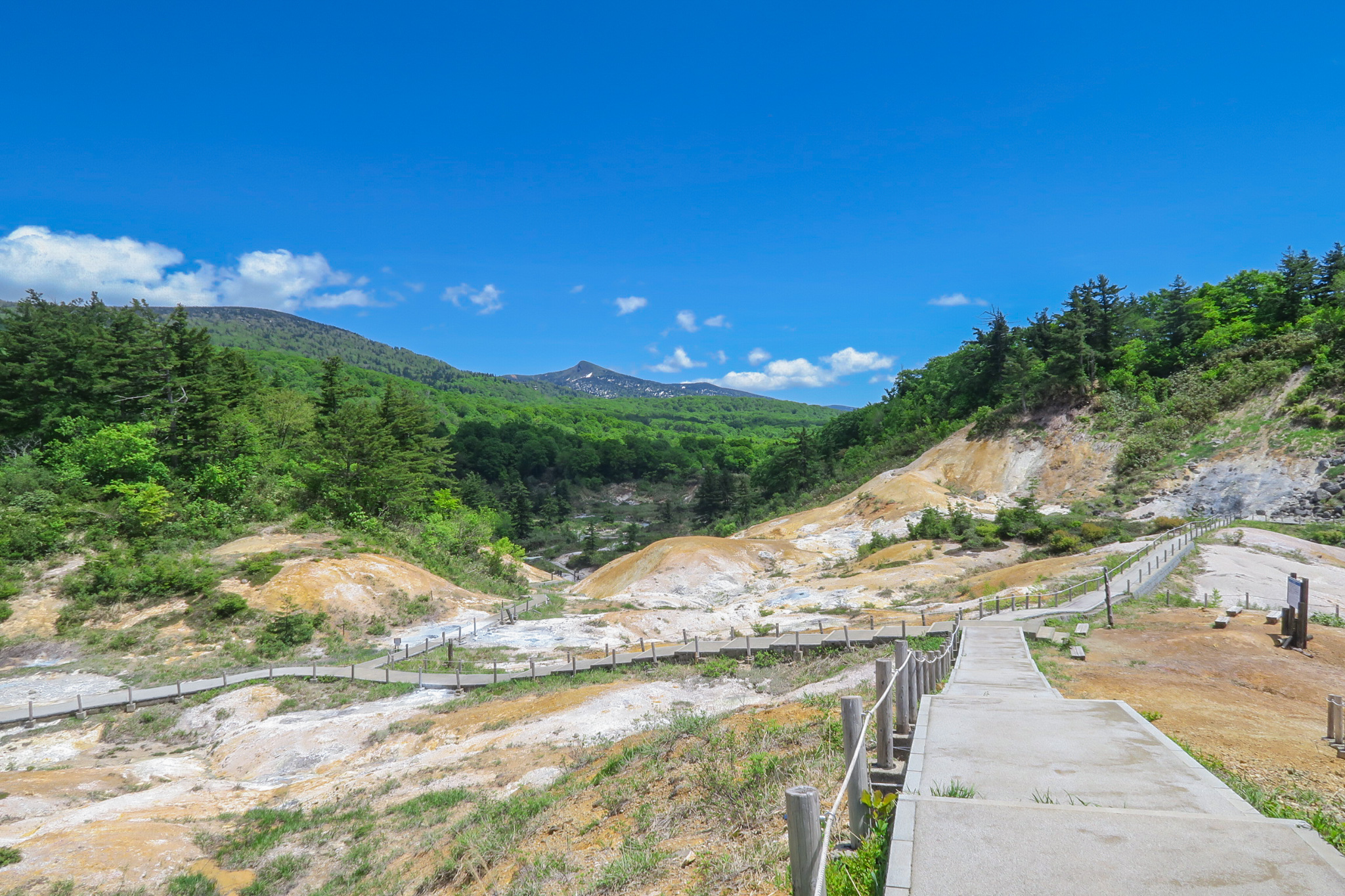 山頂から麓にかけて、それぞれ異なる泉質を持つ温泉が点在しています。