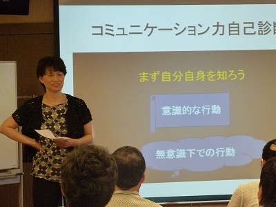 演習では、自らのコミュニケーション力について自己診断により、時と場合、相手などによって最適なコミュニケーションを使い分けるために足りない能力を確認しました。また、グループにより「伝える力」と「聞く力」の演習を行い、コミュニケーション力の向上を図りました。
