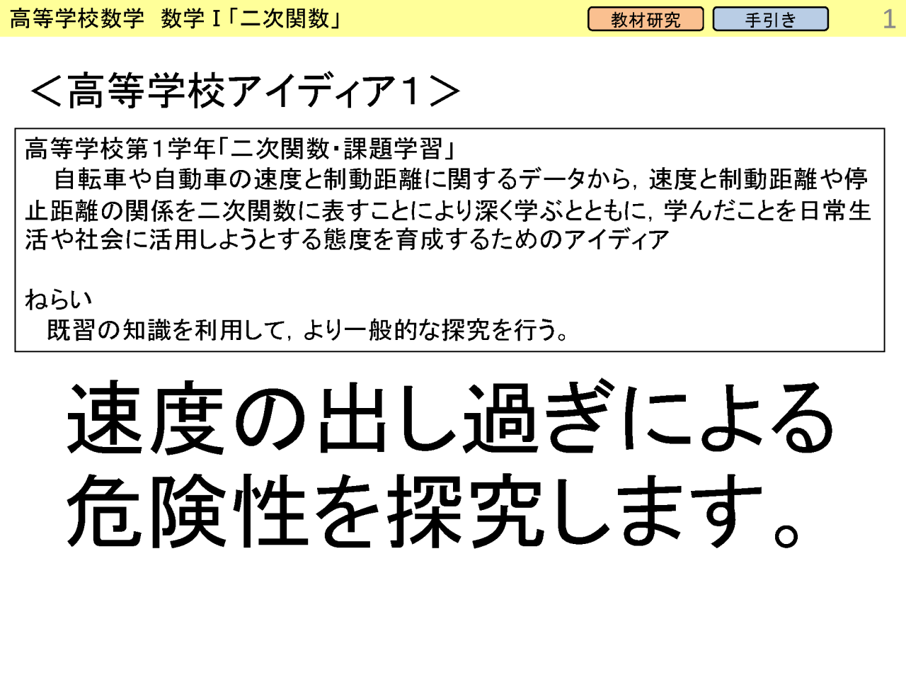 資質・能力の活用発揮(手引き) コンテンツ番号:78427 更新日:2023年12月25日 秋田県総合教育センター 教科・研究班[国語] 各領域を学校生活場面で 接続する指導計画 他領域での活用・発揮を 目指す指導計画 新たな読み方に気付かせる既習の活用 既習の読み方を「活用・発揮の可能な読み方」にする1時間 系統表や他領域の学習を 単元構想に生かそう 既習の内容を書くことに活用しよう 資質・能力の活用・発揮を意識した 年間計画 秋田県総合教育センター 教科・研究班[社会・地歴公民] 「水の旅」を俯瞰し,社会参画意識を高める プレゼンテーションソフトを使って 紙芝居動画を作る 大工場の特色を考察する資料 課題を考察するためにGoogleを使用する 生徒の既習を把握して授業を焦点化する タイトル化で特色をまとめる単元構想 秋田県総合教育センター 教科・研究班[算数・数学] 「体感する」二次関数 「構造化する」学び直し 「根拠をもつ」統計 「学びのつながり」二次関数 「教えない」ICT活用 秋田県総合教育センター 教科・研究班[音楽] 音楽で「資質・能力の活用・発揮」って? 歌唱,器楽,音楽づくりを関連付けた題材 リズムパターンを基に発展させる 音楽づくり 秋田県総合教育センター 教科・研究班[体育・保健体育] 複数種目が同時に上達 秋田県総合教育センター 教科・研究班[生活] 子供の気付きの質を高めるためのアイディア 合科的・関連的指導を行い,単元をデザインするアイディア 単元配列表を活用し,単元をデザインするアイディア 秋田県総合教育センター 教科・研究班[家庭,技術・家庭] 袋の製作~衣服や布の特性を生かして考える 米を炊く~基礎・基本を生かして考える かきたま汁の調理~気付きを引き出す指導 いもの調理実験 ~生活での活用を図るために 部屋探し~気付きを引き出す授業づくり 子供服を考える~多角的視点を引き出す工夫 秋田県総合教育センター 教科・研究班[外国語(英語)] 自分の「料理の好み」を手軽に伝えよう