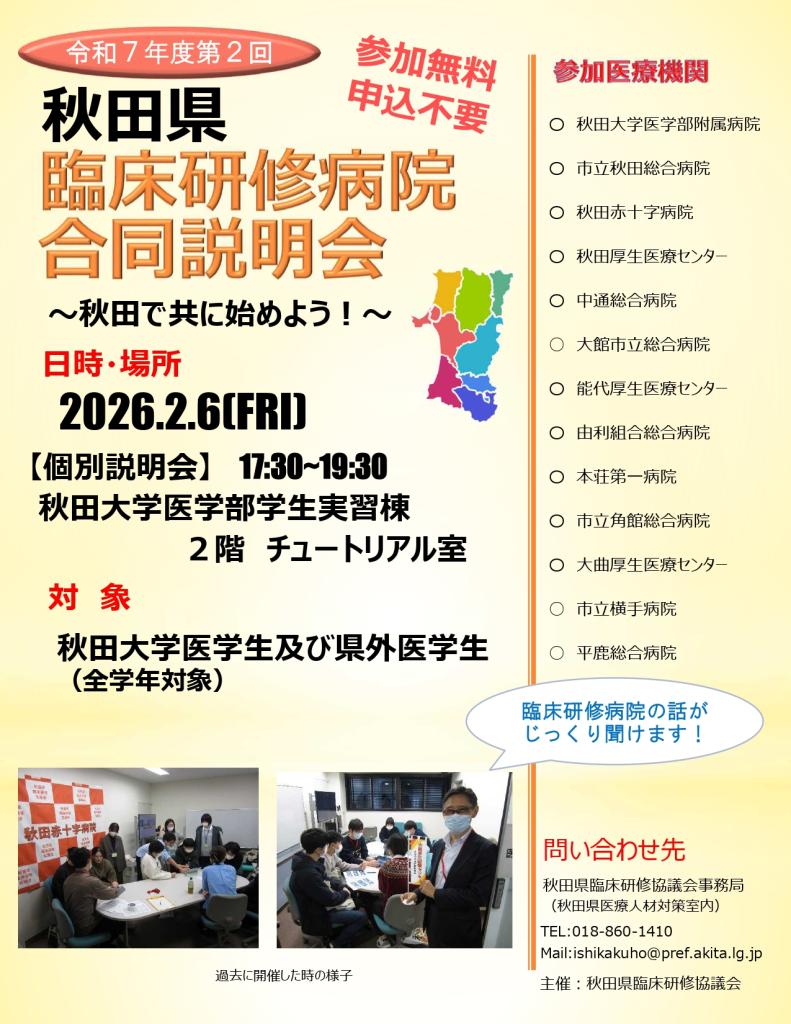 令和7年度(第2回)秋田県臨床研修病院合同説明会を開催します!