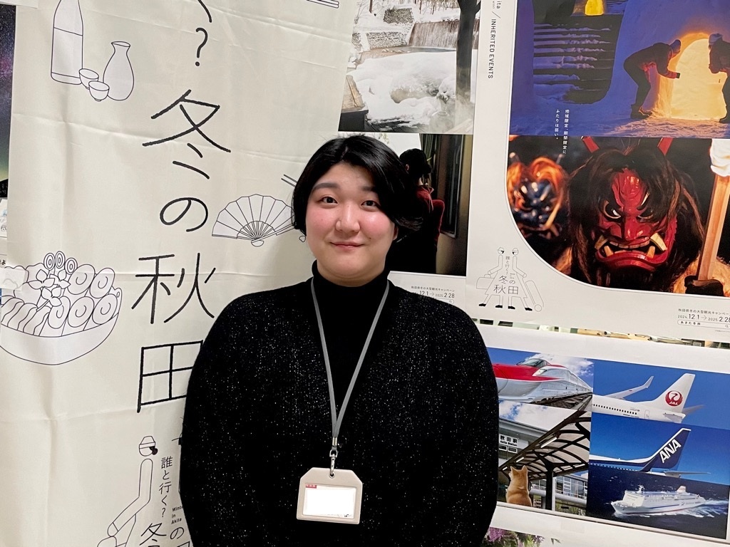 秋田の観光業を担う団体や事業者の皆様を対象とした支援事業を担当しています。宿泊施設の人手不足解消や多様化する旅行ニーズへの対応力強化に向けて、各種研修会の開催などを通じて、魅力的な観光地づくりを推進しています。また、観光統計などのデータを扱う業務も担当しています。