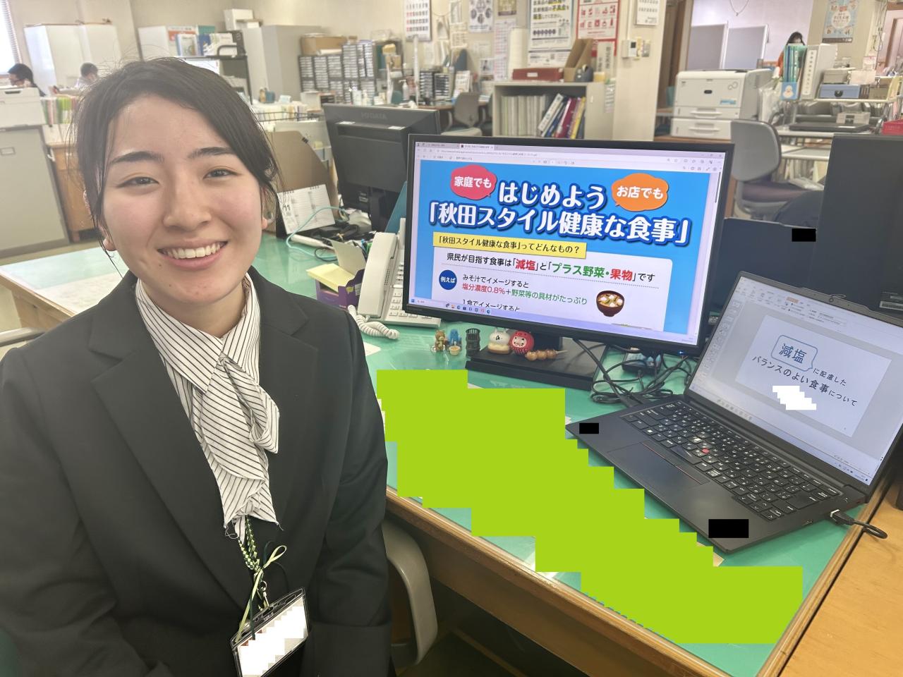 生まれ育った秋田県で様々な世代に向けた健康づくりへのアプローチをしたい、幅広く栄養の分野に携わりたいと思い、秋田県庁を選びました。