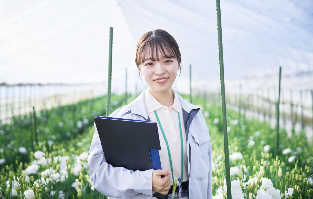 花きの生産振興を担当しています。実際に、ほ場に出向き、生育状況の確認や技術指導を行っているほか、地域の課題に応じて、新しい技術の実証や調査も行っています。