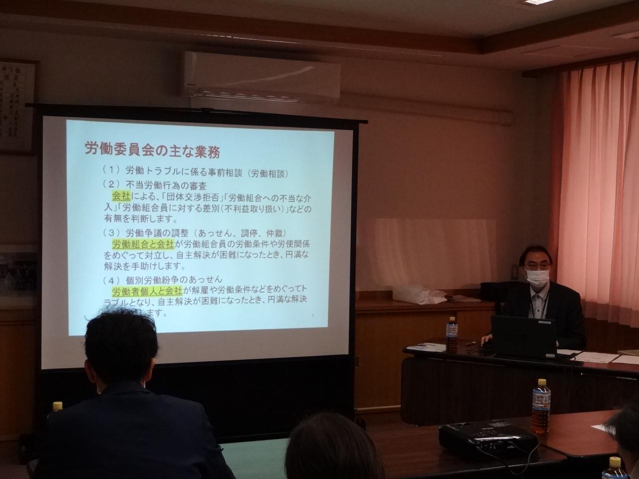 施設職員を対象に、事務局職員が、「あなたや家族が労働トラブルに巻き込まれたら」と題して、職場のハラスメント問題、困ったときの相談窓口や労働トラブルの解決支援制度などについてお話ししました。
