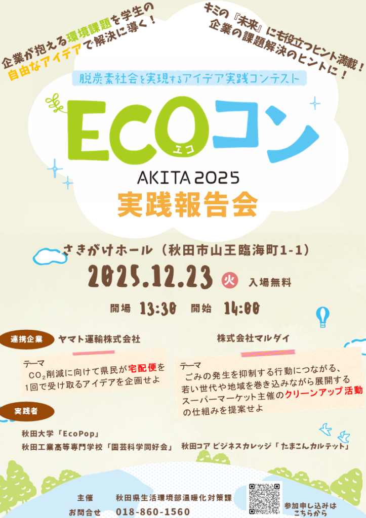今年度は、秋田コア ビジネスカレッジ、秋田工業高等専門学校、秋田大学の学生がコンテストに参加しています。