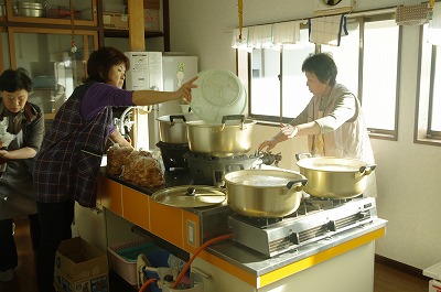 また、地元のお母さん達が手作りの漬け物や、新米のおにぎり、地域で採れた野菜などを使ったなべっこなどを調理し、訪れた人に地元の秋の味覚を振る舞いました。