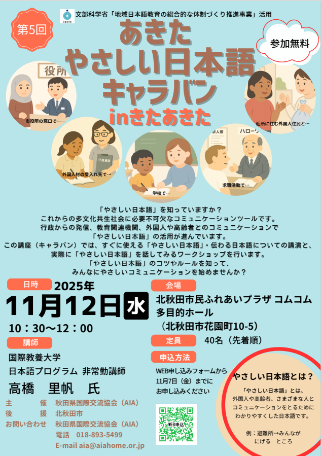 「第5回 あきた やさしい日本語キャラバン」の開催について