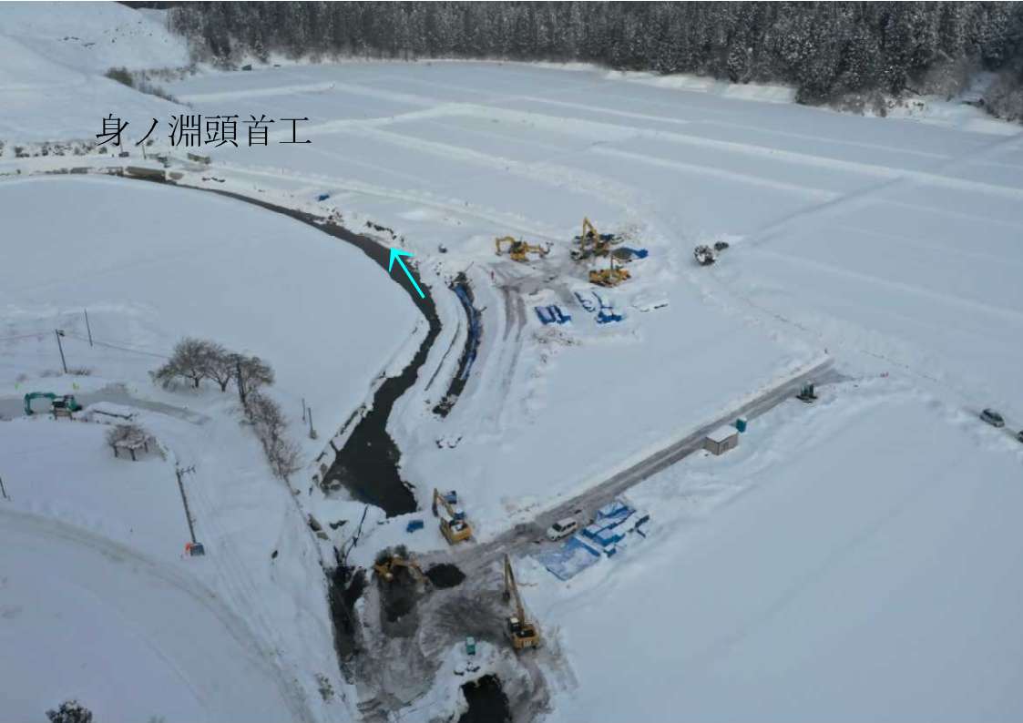 現在の進捗状況:身ノ淵頭首工の上流において工事に着手しております。