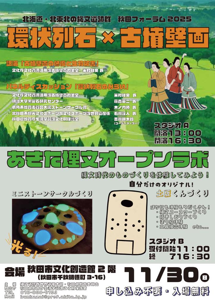 北海道・北東北の縄文遺跡群 秋田フォーラム『環状列石×古墳壁画』『あきた埋文オープンラボ』同時開催!