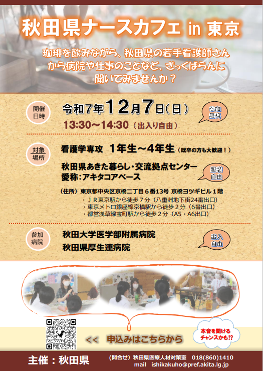 【看護学生】「秋田県ナースカフェ in 東京」を開催します!