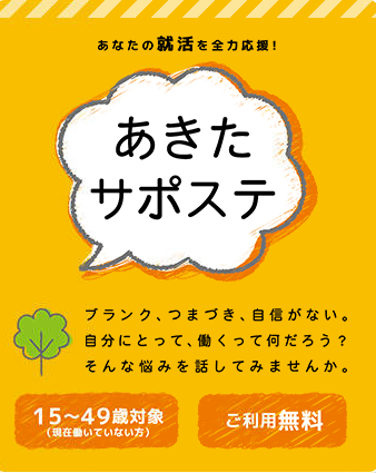 あきた若者サポートステーションでは、働くことに悩みを抱えている若者に無料で就労支援を行っています。