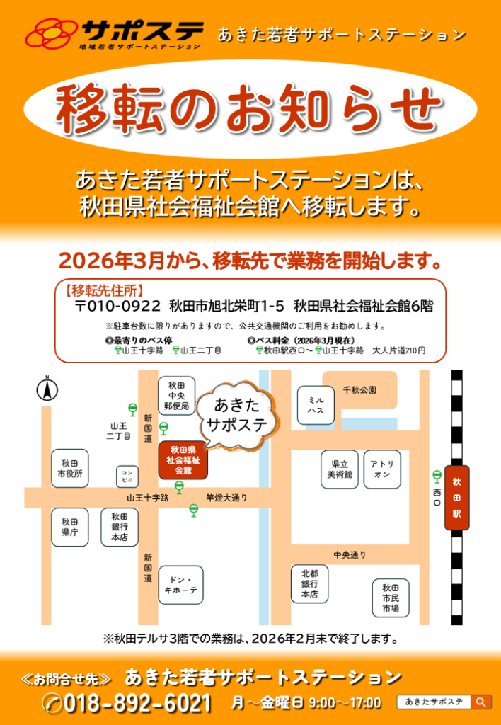 あきた若者サポートステーションが移転します(2026年3月予定)