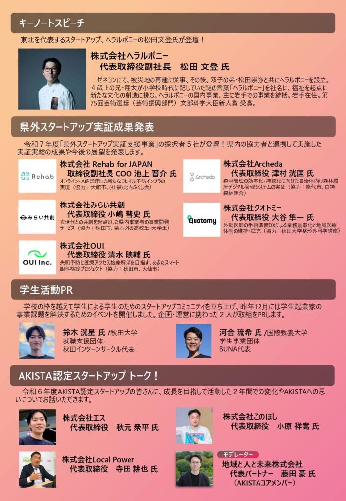 地域から成長を目指すスタートアップ・起業家や学生、成長を支えるサポーターや事業者など、AKISTAを一緒に盛り上げてくださる皆さんのご参加をお待ちしております!
