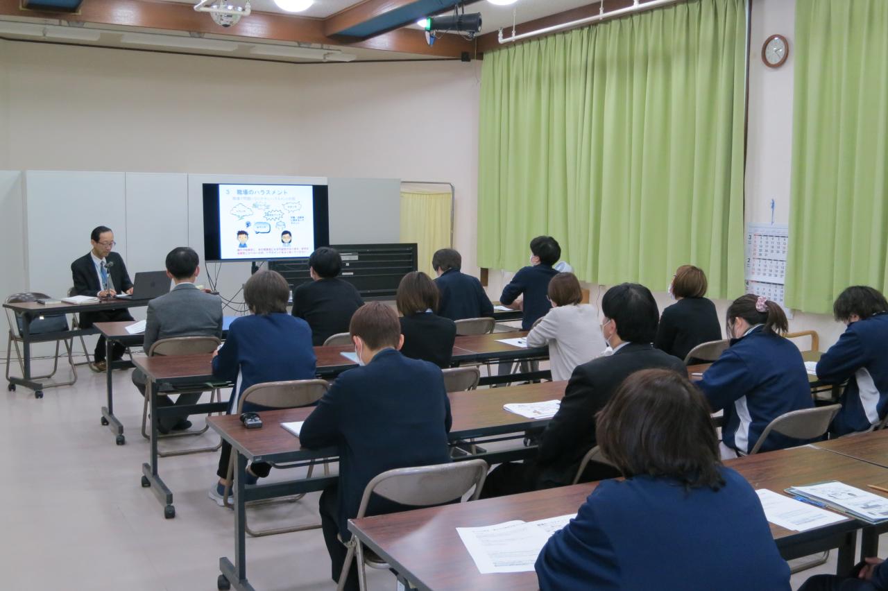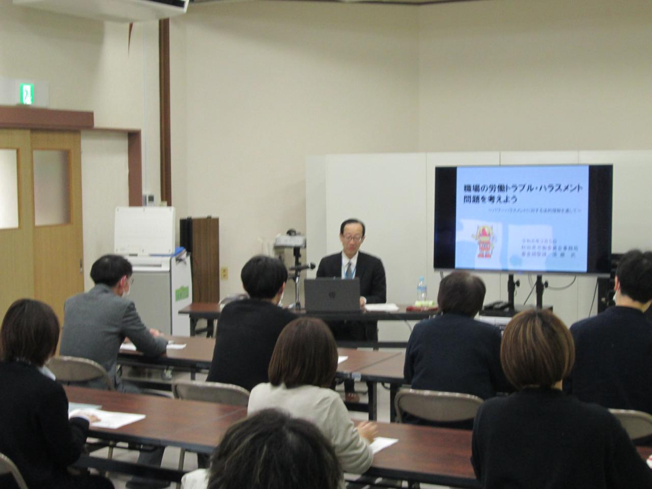 施設の従業員などを対象に、「職場の労働トラブル・ハラスメント問題を考えよう~パワーハラスメントに対する法的理解を通して~」と題して、事務局職員が講演しました。