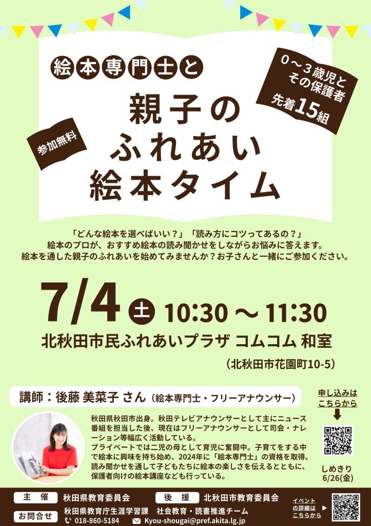 絵本専門士と親子のふれあい絵本タイム(県北地区)の開催について