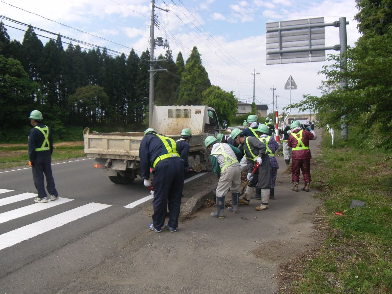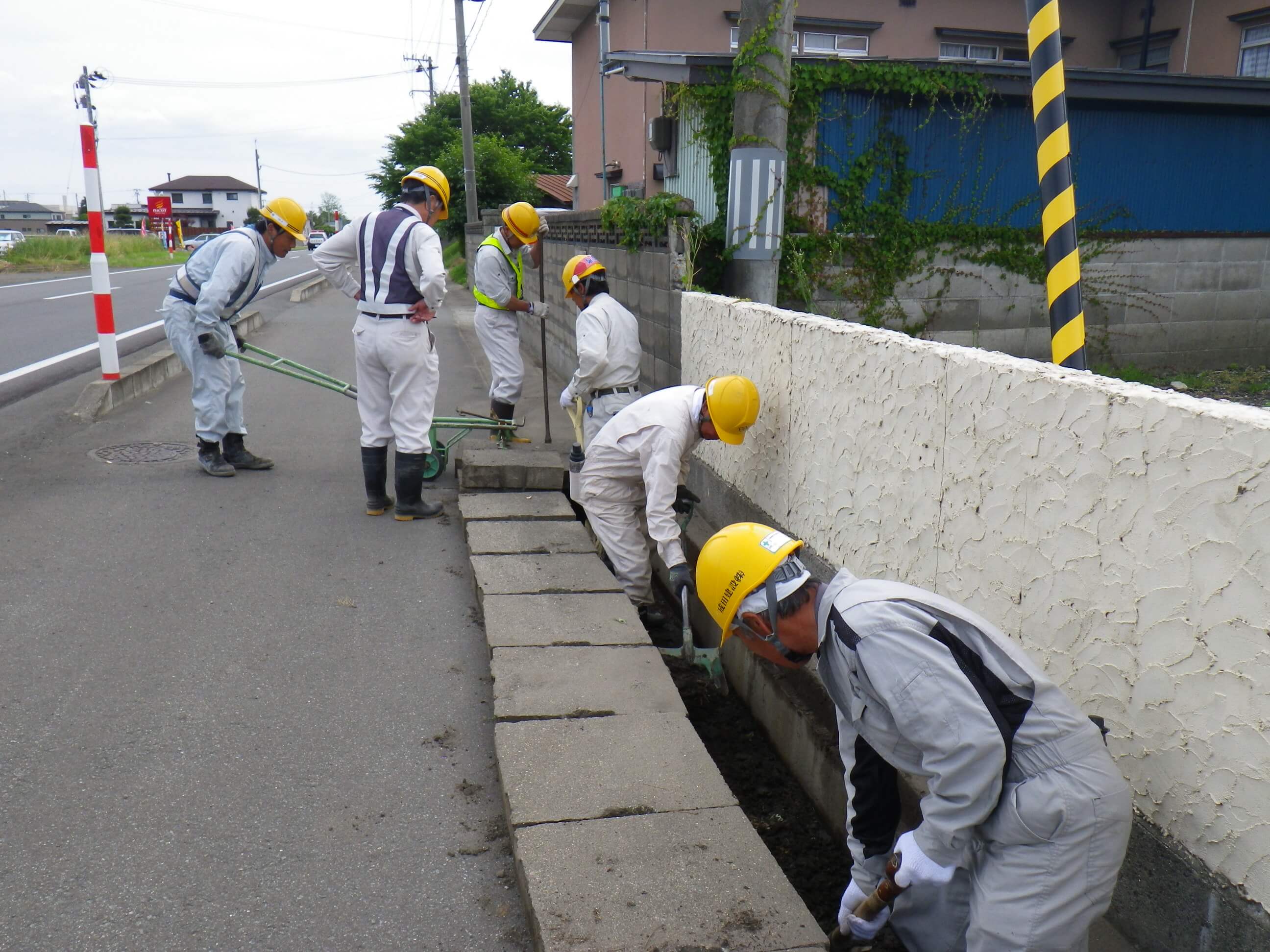 作業内容としては、道路の草刈り作業(野球場交差点~大潟村境)、歩車道ブロック脇の除草、路肩・歩道上の清掃(野球場交差点~大曲交差点)を行いました。