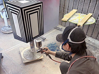 スプレーガンで吹付塗装をしています。自由なデザインで塗装できます。