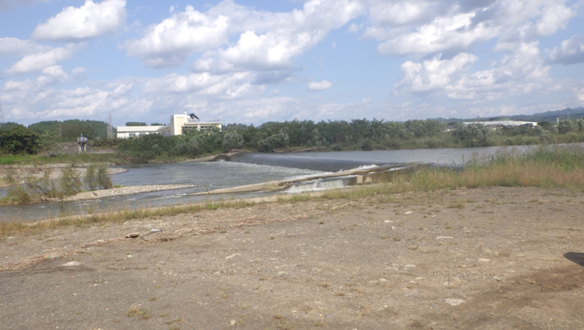 はじめに、北秋田市米内沢の「本城頭首工」を見学しました。 頭首工とは、河川から必要な農業用水を用水路に引き入れる施設のことです。頭首工は取水口、取水堰、魚道などの付帯施設と堰の管理を行う管理施設などからなります。 本城頭首工は、一級河川阿仁川にかかる全堰長108.5mの巨大なコンクリート製の固定堰です。平成19年の豪雨の影響で被災しましたが、その後の災害復旧事業によって現在の形になりました。 現地では、頭首工の形態や概要の説明をはじめ、新築された魚道(サケやアユなどの魚が遡上するために必要な通路)が生態系に考慮した設計になっていること等を学びました。 学生からは、固定堰と可動堰の違いや、魚道の位置についてについて質問がありました。